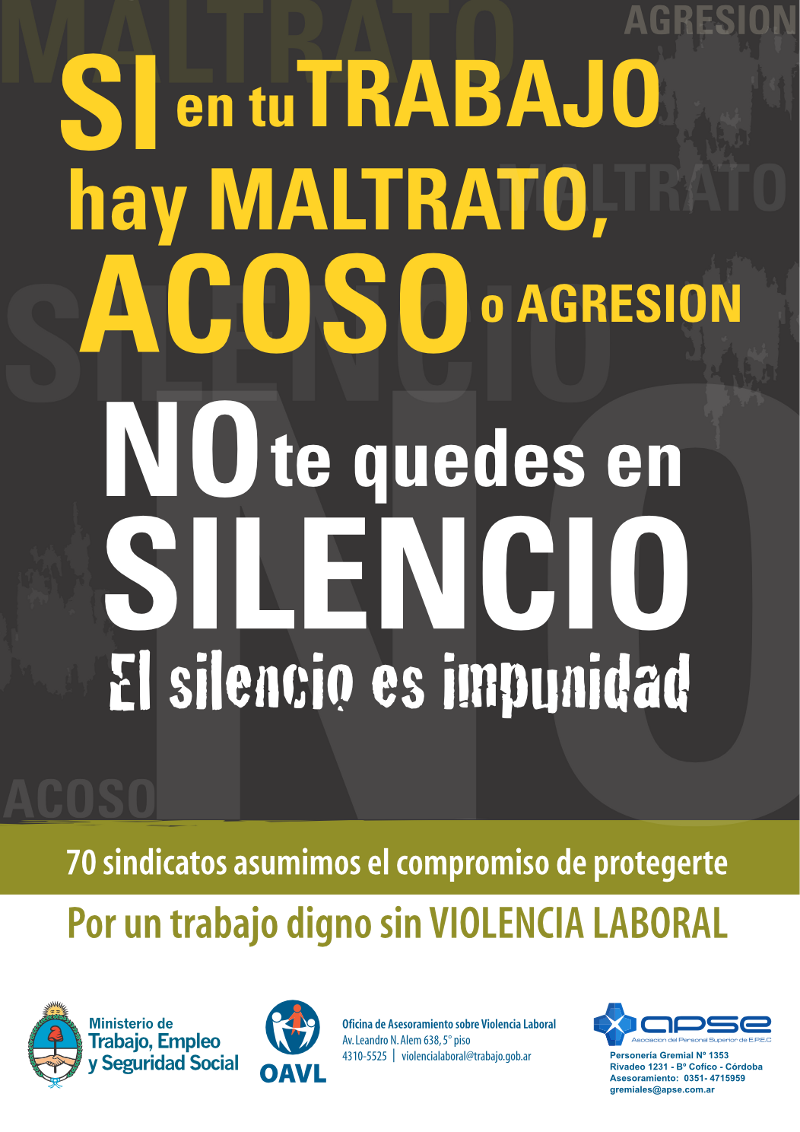 Afiche de la campaña contra la violencia laboral del ministerio de Trabajo, Empleo y Seguridad Social de la República Argentina.